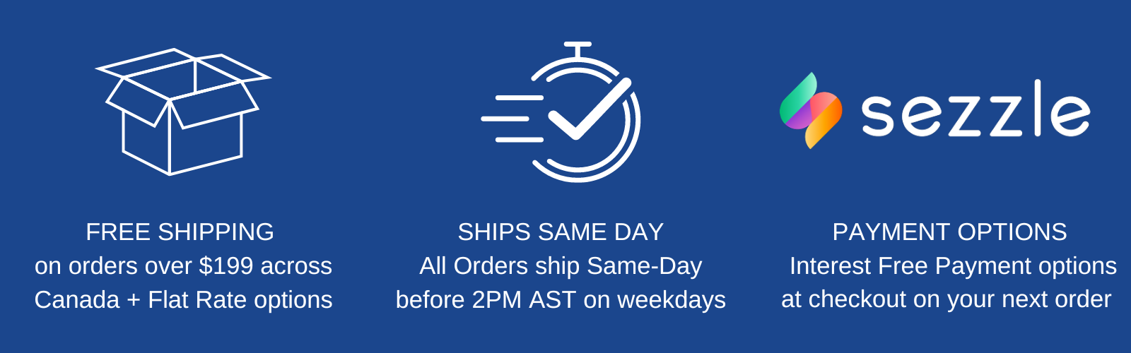 Our flat rate wholesale shipping of $14.99 per order or FREE Shipping on orders over $199 across Canada!